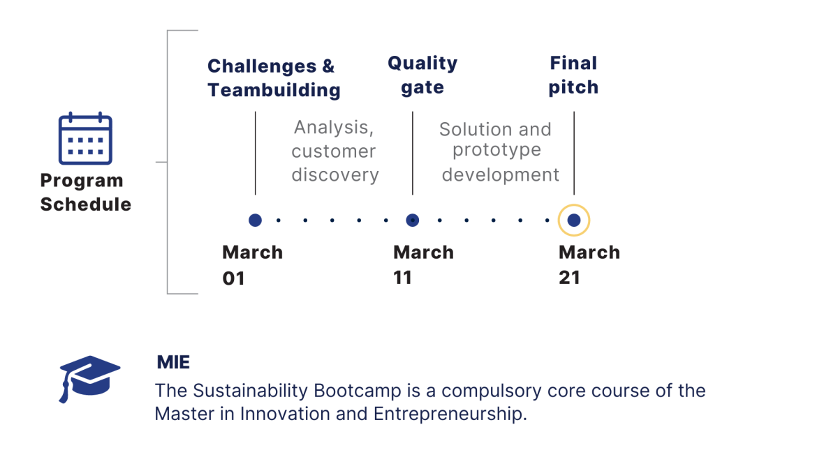 - Workshops, guest lectures, coaching and mentoring with entrepreneurs, sustainability and industry experts